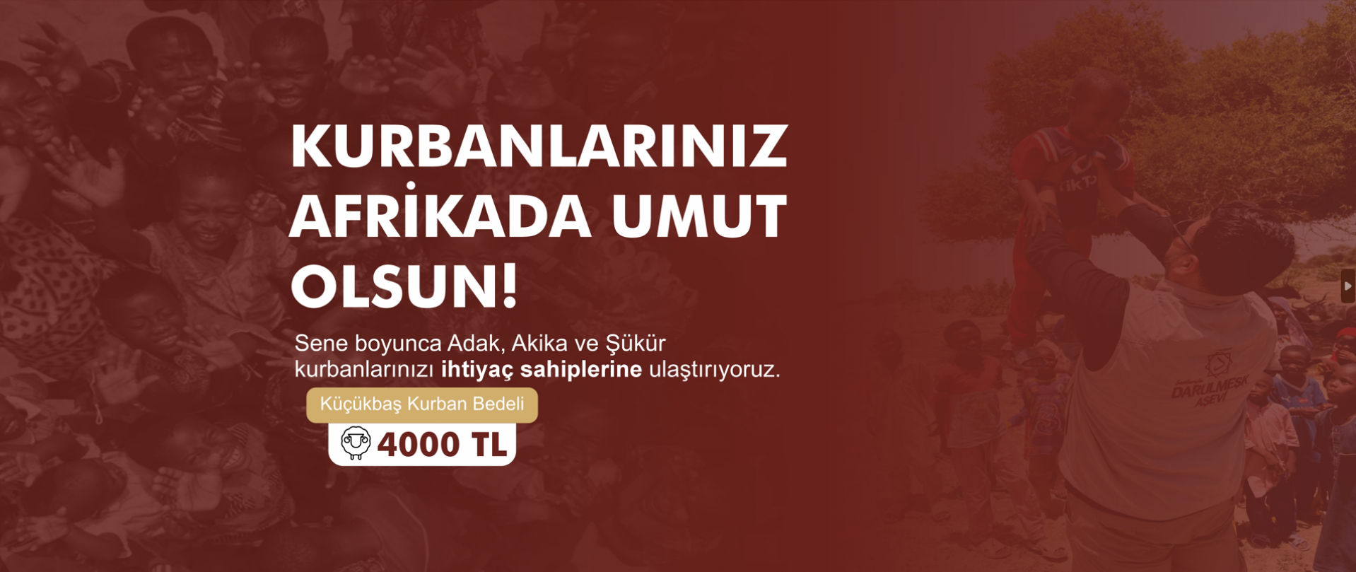 Darülmeşk aşevi olarak, dünya genelinde yardıma muhtaç insanlara umut olma fırsatını sunuyoruz. Küçükbaş kurbanlarınızla hem adak, akika ve şükür gibi..